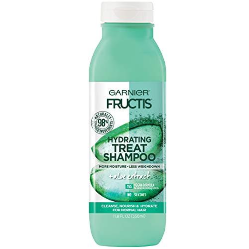 - Garnier Fructis Hydrating Treat Shampoo, Aloe Extract, 98 percent naturally derived ingredients, more moisture, less weighdown, for soft, smooth, shiny hair, cleanse, nourish and hydrate for normal hair
