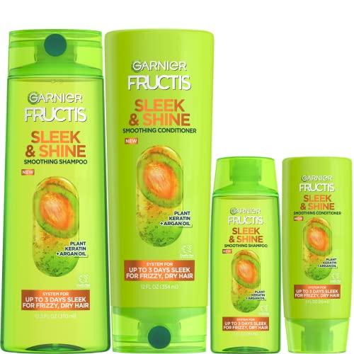 - Infused with plant keratin and sustainably sourced argan oil, Sleek & Shine's shampoo and conditioner set fights the frizzy hair battle with up to 72 hours of frizz control (when used with our Sleek & Shine serum or leave-in conditioner)
