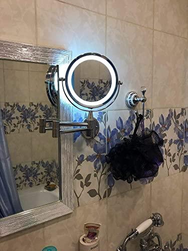 - 8 inch large mirror: 8 inch cosmetic mirror on the wall, wide angle view, perfect size and proportions, more luxurious and elegant. The mirror has a double- sided function, one is a standard mirror and the other is a magnifying glass that allows you to clearly see your features without distortion. After-Sales