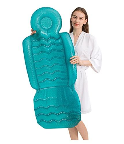 - Perfect bathing experience: comfortable and soft pvc material inflatable SPA cushions and pillows. Filled with gas inside, comfortable, elastic and safe. Fits your body perfectly, like you\'re on a soft beach.\n- Newly designed, soft ergonomically designed bath pillow wraps your curves, while thicker designed bath pillow cushion supports your tired neck and head. Effectively relieves muscle soreness.\n- The one-piece design bath cushion relieves pressure on your back, shoulders and tailbone, while providing a thick headrest to support your tired neck and head. Convenient for reading in the bathtub, or relaxing with your eyes closed.\n\nName: Inflatable SPA cushion\nMaterial: pvc\nBackrest: unfolded size: 145*62*10cm\nBackrest: Package size: 20*5*17cm\nWeight: 0.65kg