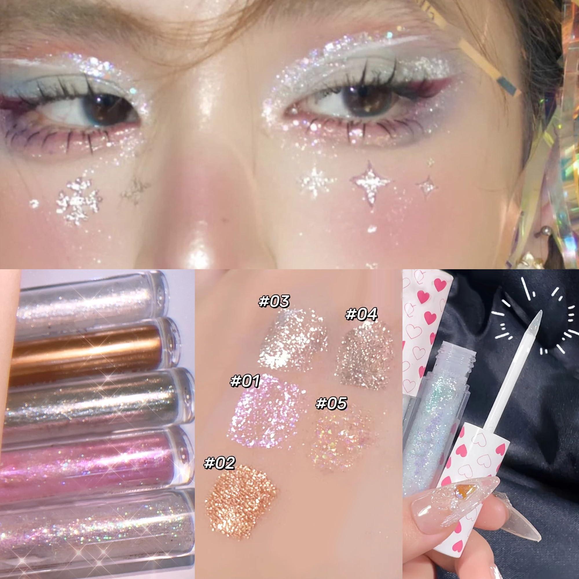 - 5 Pcs Glitter Liquid Eyeshadow Pack: Liquid glitter eyeshadows with multiple colors (splendid glitters), the moisturizing liquid texture adhered smoothly and thinly to create a bling korean makeup.