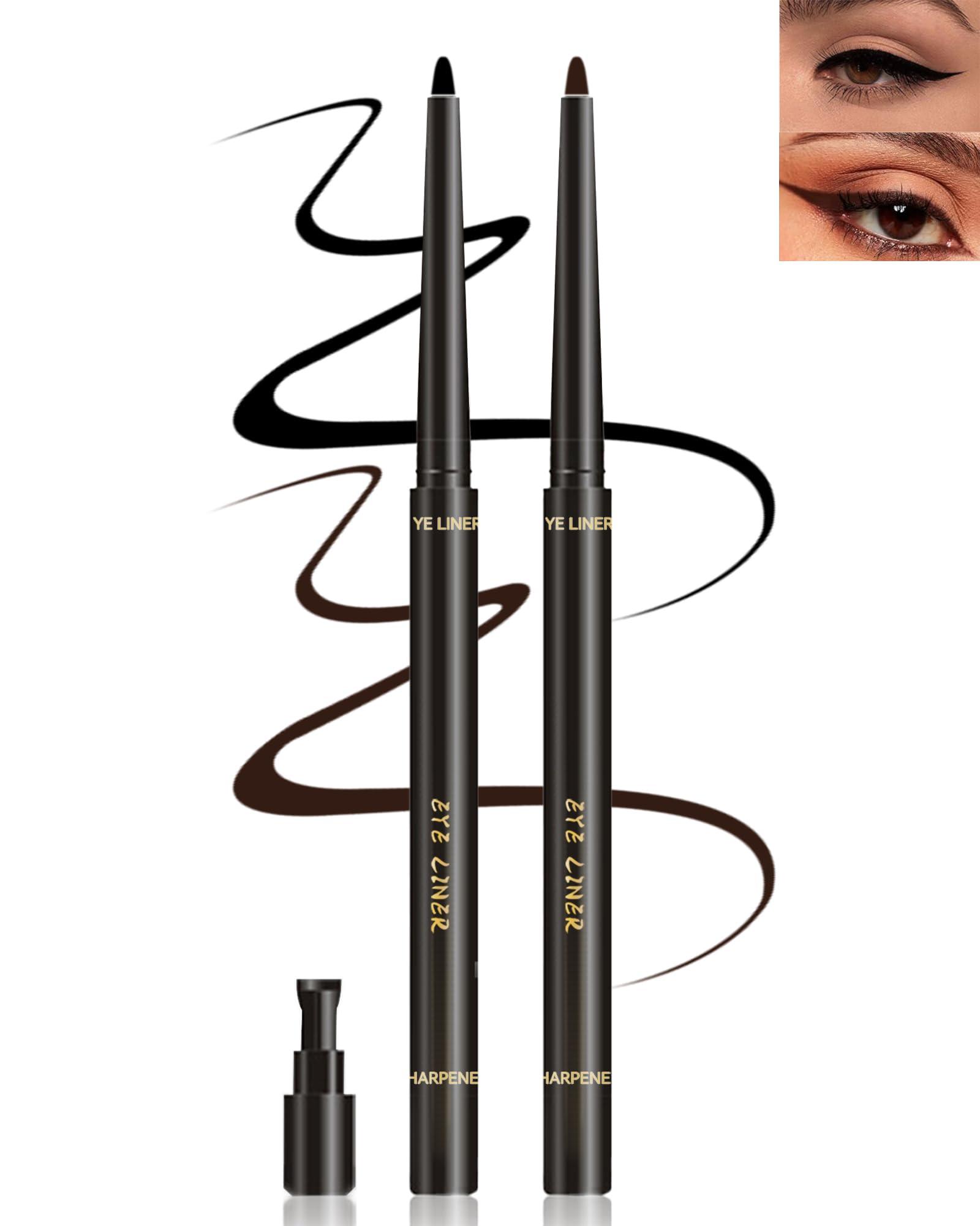 Waterproof Gel Eyeliner Brown Black Retractable Eyeliner Eyebrow Pencil Richly Pigmented Color Creamy Glide with Built-in Sharpener Long-Stay Sweat & Smudge Resistant Eye Liner Makeup for Women All Day Use