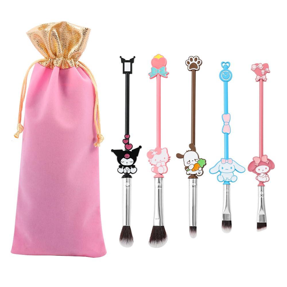 - CUTE COLLECTION: Includes 5 soft pink makeup brushes with cute cartoon anime designs on the handles for applying face powders, blushes, and eyeshadows.