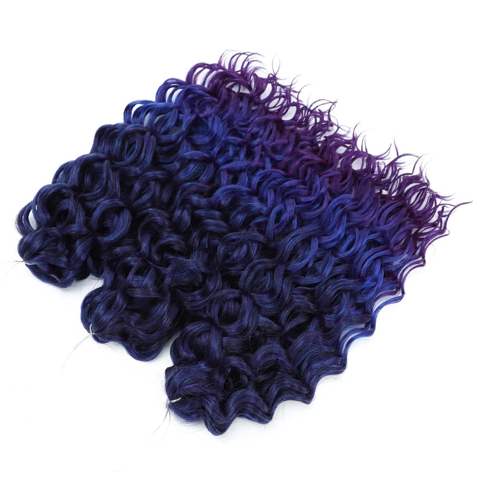 Generic Generic Deep Wavy Twist Crochet Hair Curls Water Wave Crochet Braids Synthetic Curly Braiding Hair Extensions For Women T1B-Blue-Purple 24Inch#3Pcs/Lot