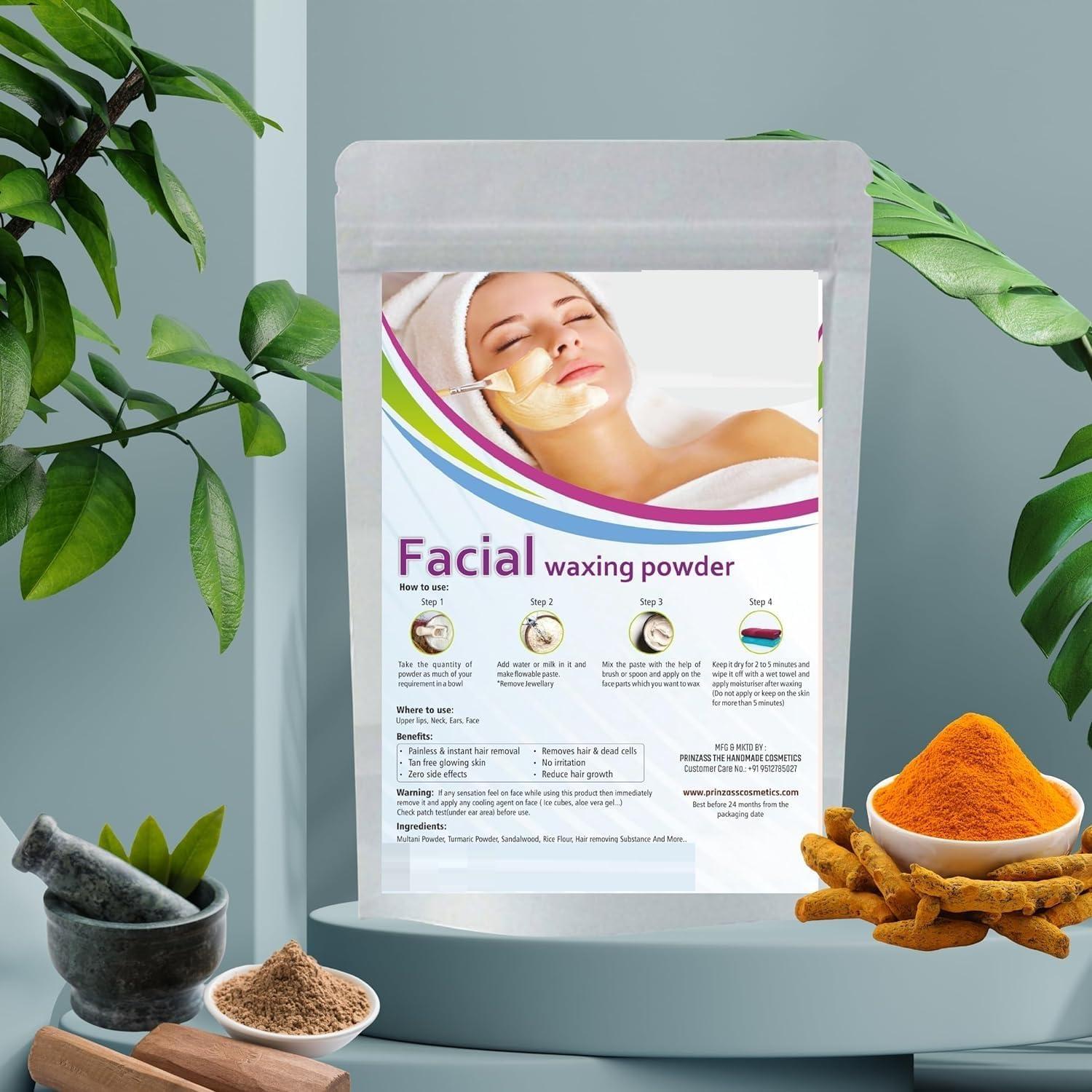 - Facial wax powder, facial hair removal, Instant & painless hair removal, hair removal powder for women, hair remover for women, hair remover, turmeric hair removal powder, turmeric & sandalwood ingredient facial hair remover