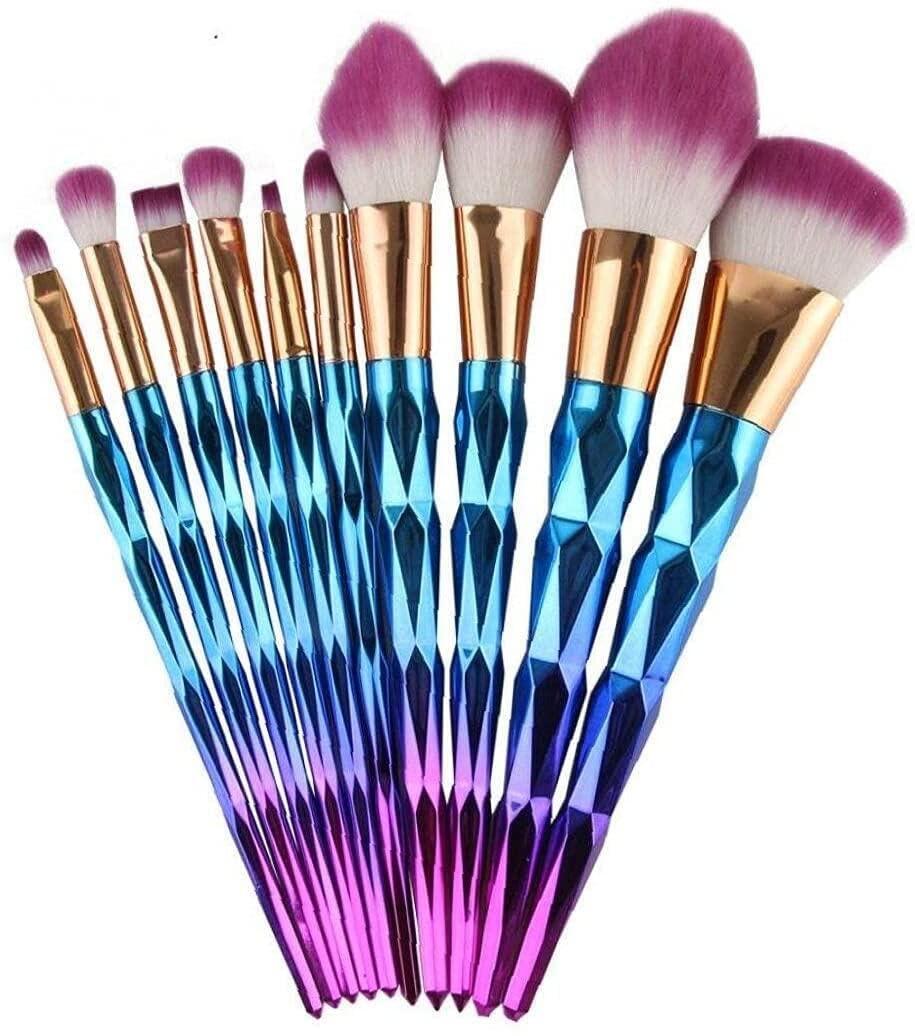 - These makeup brushes feature gradient diamond handles from purple to blue, with double-coloured soft hairs.
