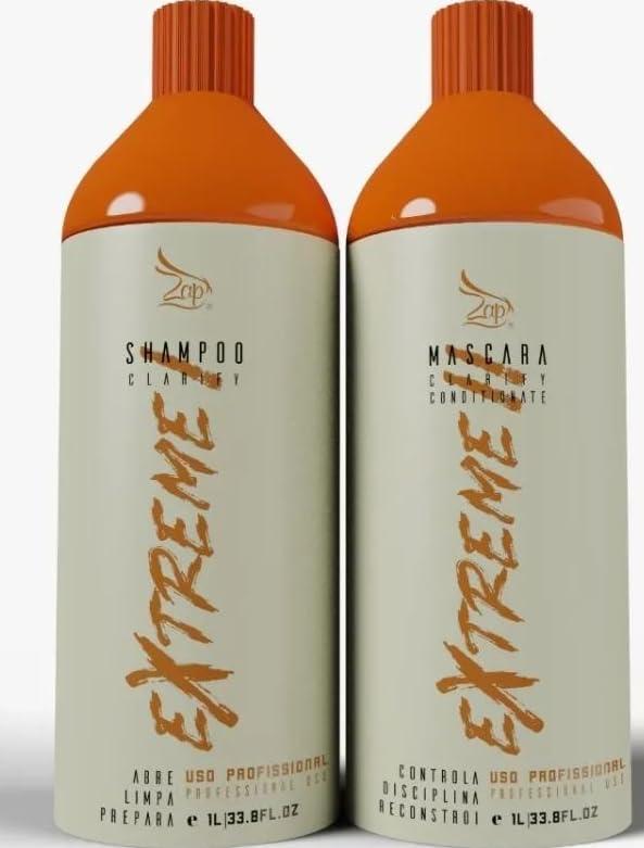 Zap Extreme Professional Keratin Treatment Formalin Free (Shampoo & Mask) ZAP is one of the most famous brands in Brazil, with more than 15 years of experience in the market, and is one of the best-selling products approved by thousands of professionals and customers throughout Brazil. . ZAP Extreme Shampoo ZAP Extreme Shampoo has been developed to intensely cleanse your hair. It ensures that the accumulated waste that leaves your hair dull, heavy and lifeless is removed. It also complements the pH increase and restores the natural beauty of the hair, leaving it soft and silky. HOW TO USE : Wet hair and gently massage shampoo into hair. Rinse the hair and repeat this procedure for up to 15 minutes. Then rinse thoroughly to remove any excess shampoo. ZAP Extreme reconstructive MASK It is a hair reconstruction system with intense disciplinary action promoted by Nanofix technology, a perfect combination of a complex of vitamins with fusion omegas and a mixture of natural oils combined with nanotechnology, which produces a thermal activation during styling, volume control and a straightening effect. . Restores the natural beauty of hair, leaving it soft and silky. Promotes thread alignment with incomparable shine. HOW TO USE : Attention : Shake well before use The use of gloves is mandatory. First dry the hair with a dryer after using the shampoo before using the mask (Zap Extreme Reconstructive Mask). Divide the hair into four quadrants and apply the mask evenly along the entire length of the strands. Gently massage the product from the roots to the ends of the hair. Leave on for 20 to 40 minutes. After the action time, rinse off the excess product, rinse at 50% and for blonde hair, rinse at 100%. Dry the hair well with a brush and dryer. Then style the hair with a straightener. Finally, rinse the product completely from the hair and dry again with a dryer (cold air) or as desired. 100% Brazilian product ZAP Extreme Shampoo 1000ML ZAP Extreme MASK 1000ML PLEASE NOTE: Products that are shipped and show heavy signs of use, causing the product to no longer be in a salable condition, will not be accepted!