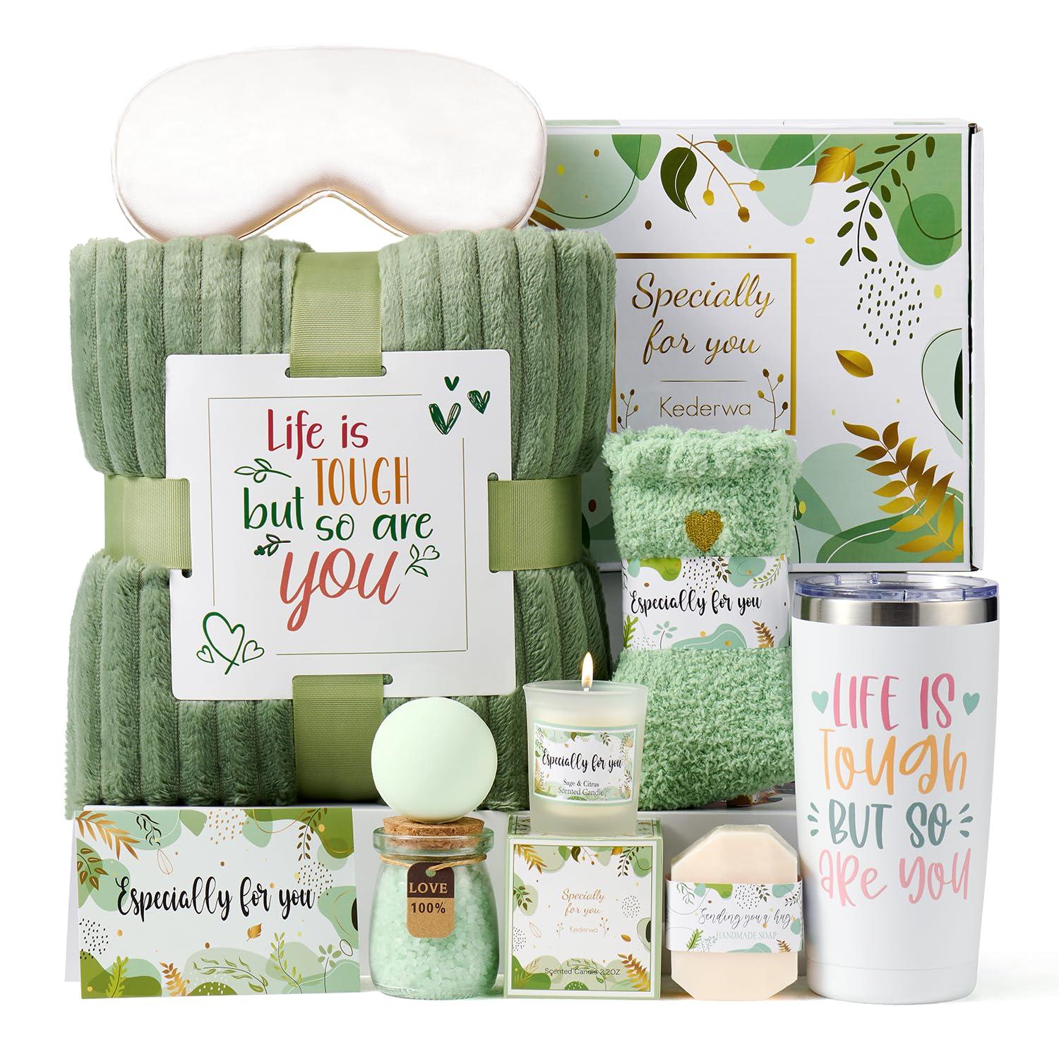 - Get Well Soon Gift Basket for Women: Brighten her day with our "Life is Tough but So Are You" gift set. This thoughtful care package is perfect for showing your love and support to friends, moms, sisters, daughters, grandmas, and colleagues. Ideal feel-better gifts for women who need a comforting hug during recovery, making them feel cherished and uplifted.