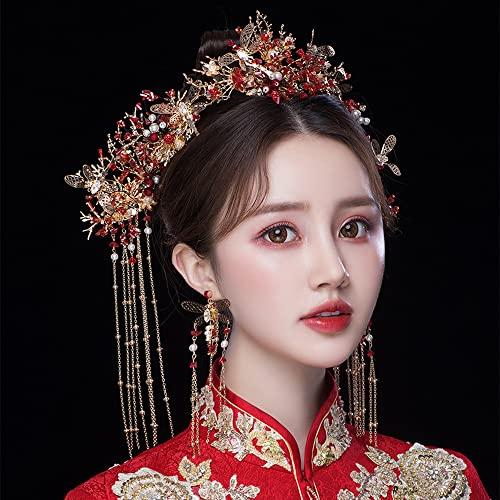 - This headdress is an essential bridal decoration for traditional Chinese weddings. Beautiful butterfly, elegant tassel, red and gold color matching, hollow design, make the bride very graceful and luxurious, she will definitely be the most dazzling scenery at the wedding party