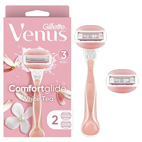 Venus razors for women are designed with a womans body in mind. From handles designed for a comfortable grip to pivoting heads that contour to curves, Venus razors are designed to help reveal touchably smooth skin. Venus ComfortGlide White Tea razor blades feature 3 curve-hugging blades and built-in flexible Soap Bars that when wet, release light White Tea scented body butters helping the razor glide seamlessly over your skin. No need for separate shaving cream! Did you know that any Venus blade refill fits any Venus razor handle? Shave your way without buying a whole new Venus handle.