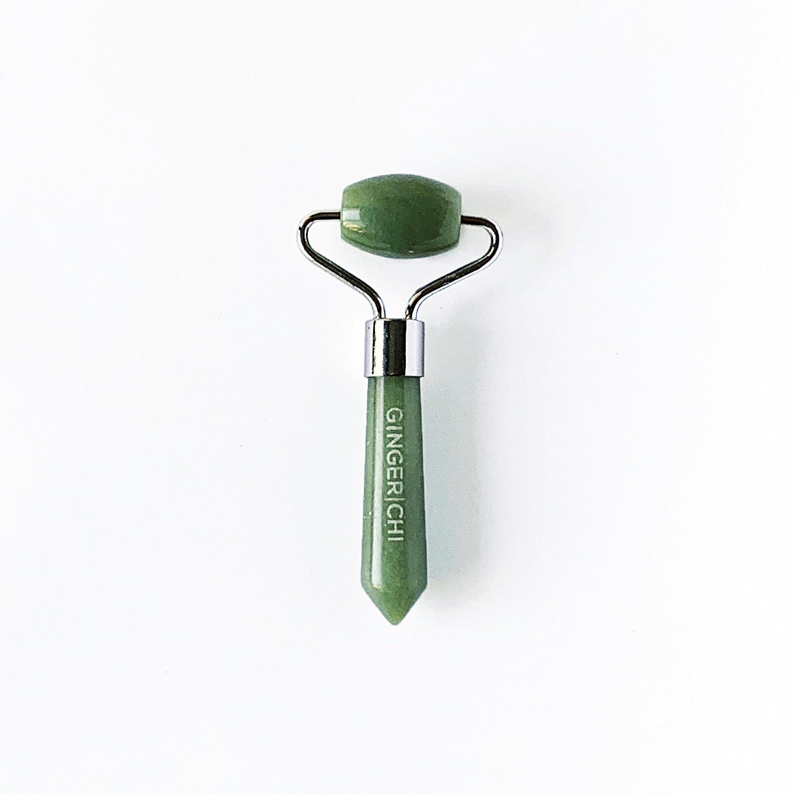 Ginger Chi Natural Anti-Aging Jade Therapy Treatment Face Roller Wrinkle Remover Neck Slimming Reduce Puffiness Healing Fine Lines Facial Massager (Mini Roller)