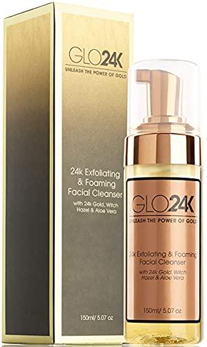 - - POWERFUL HIGH-PERFORMANCE ANTI-AGING INGREDIENTS - Enriched with powerful Anti-Aging ingredients 24k Gold, Witch Hazel, and Aloe Vera - all known for their anti-aging properties, this 24k Exfoliating & Foaming Facial Cleanser will hydrate and refresh your skin for a radiant, flawless appearance. 24k GOLD is the best natural anti-inflammatory antioxidant. WITCH HAZEL will sooth and protect your skin. ALOE VERA contains Vitamins and Antioxidants to defy the aging process.