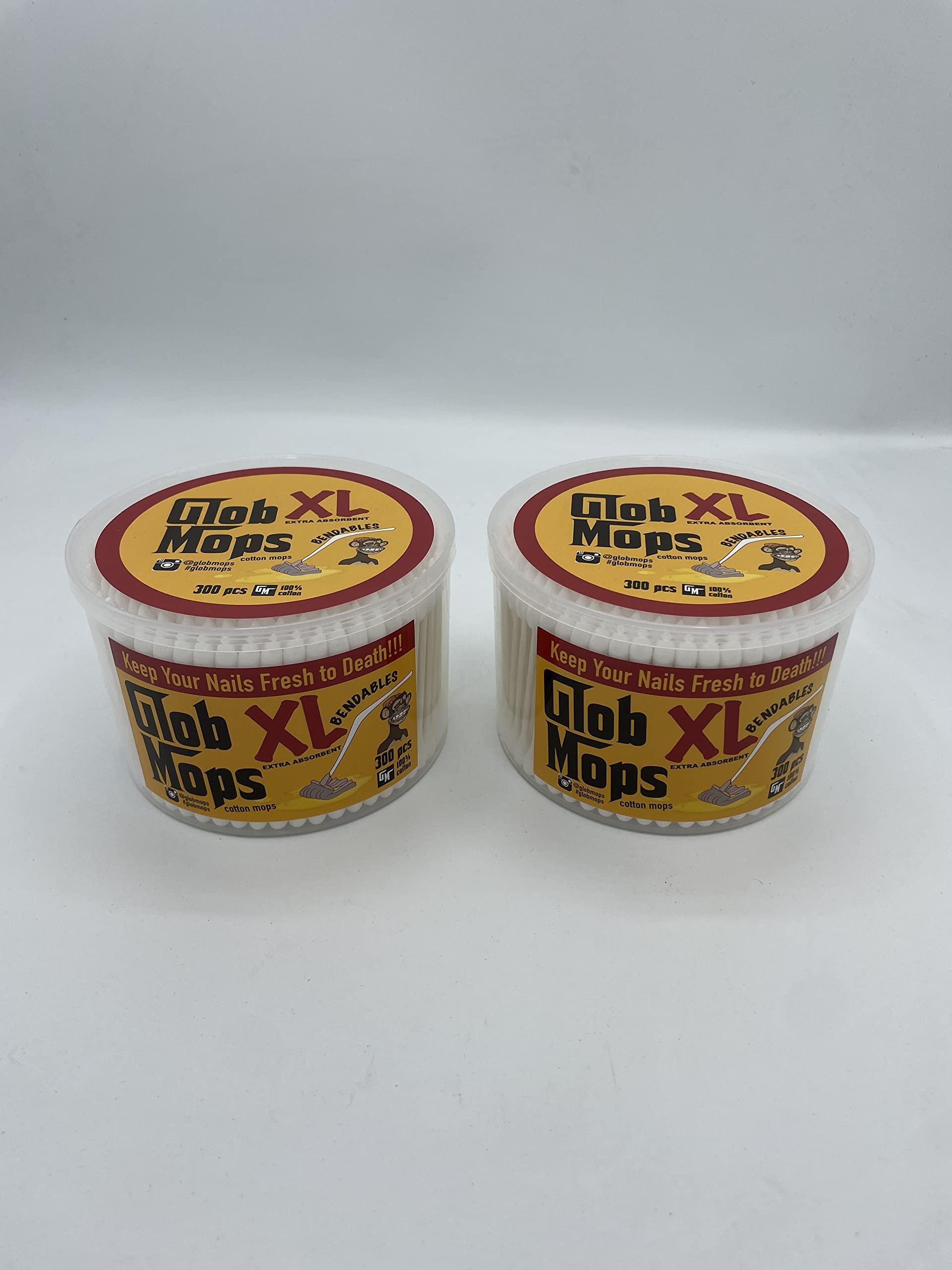 new glob mop XL Bendables have paper sticks that are easily bendable for those tight spots. The Glob Mops XL 2.0 BENDABLE Cotton Mops have three times more cotton than the oinal v2 mops, and they have extra loose cotton for better absorption. The creator of Glob Mops also added an extra 100 mops to the count. There is a total of 300 mops instead of 200 now. With more cotton than the leading brand, Glob Mops BENDABLE XL 2.0 is the best swab in the game, keeping your nails fresh to death. Design The creator of Glob Mops started using regular cotton swabs and decided he needed something better for his personal use. He tweaked the design of the regular cotton swab to have wooden sticks for more durability and made one end pointed for those hard-to-get corners. The Glob Mops work wonders for keeping your nails fresh for every rip. Dual Tips Glob Mops have 2 tips with different shapes. At one end of the bamboo stick is a pointed cotton edge cleaner; at the other end is a bubble cotton swab end. For Nails and Bangers Use Glob Mops BENDABLE XL 2.0 swabs to keep your quartz nails and bangers clean after each use. Nails and bangers can show oil residue and oxidation after just one use. Made with 100% pure cotton, these bamboo cotton mops prevent oxidation and torching and are specifically designed for easy use. They reach difficult areas and absorb excess oil after a session. Easy to Carry This pack conveniently includes 300 swabs and come in an intuitive plastic travel case, easy to carry around in luggage, bags, cases or other travel cases. Bundle Includes: 2 x Glob Mops BENDABLE XL 2.0 Cotton Mops (300 Pieces)