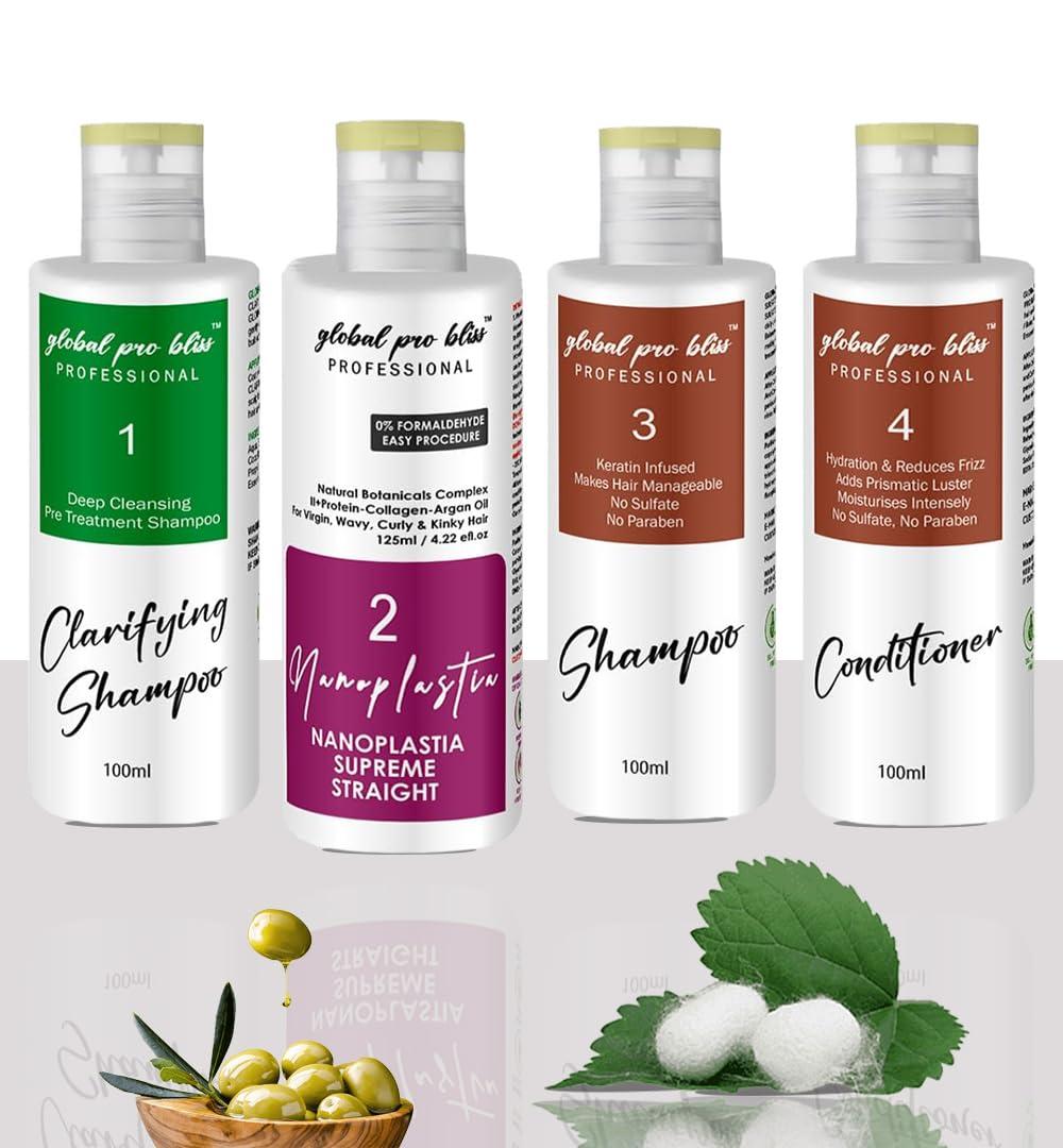 - COMPLETE HAIR CARE SYSTEM:- This pack includes a clarifying shampoo, the Nanoplastia Supreme Straight treatment, a shampoo, and a conditioner, providing everything you need for professional-quality hair straightening at home.