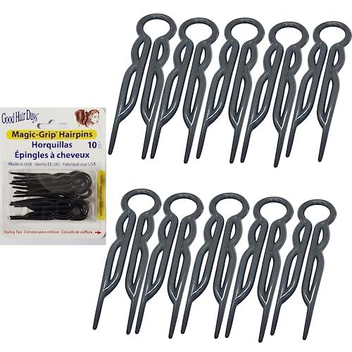 - PATENTED HAIRPIN DESIGN MADE WITH FLEXIBLE AND STRONG PLASTIC. A winning combination made better by Good Hair Days, a woman-owned family-operated USA hair accessories manufacturer since 1996. With decades of product knowledge and practical experience, our high quality hair products appeal to all ages, all hair colors, and are made to last to fit your budget. With confidence, use our Magic-Grip plastic hair pins to create updos that reliably hold all day long.