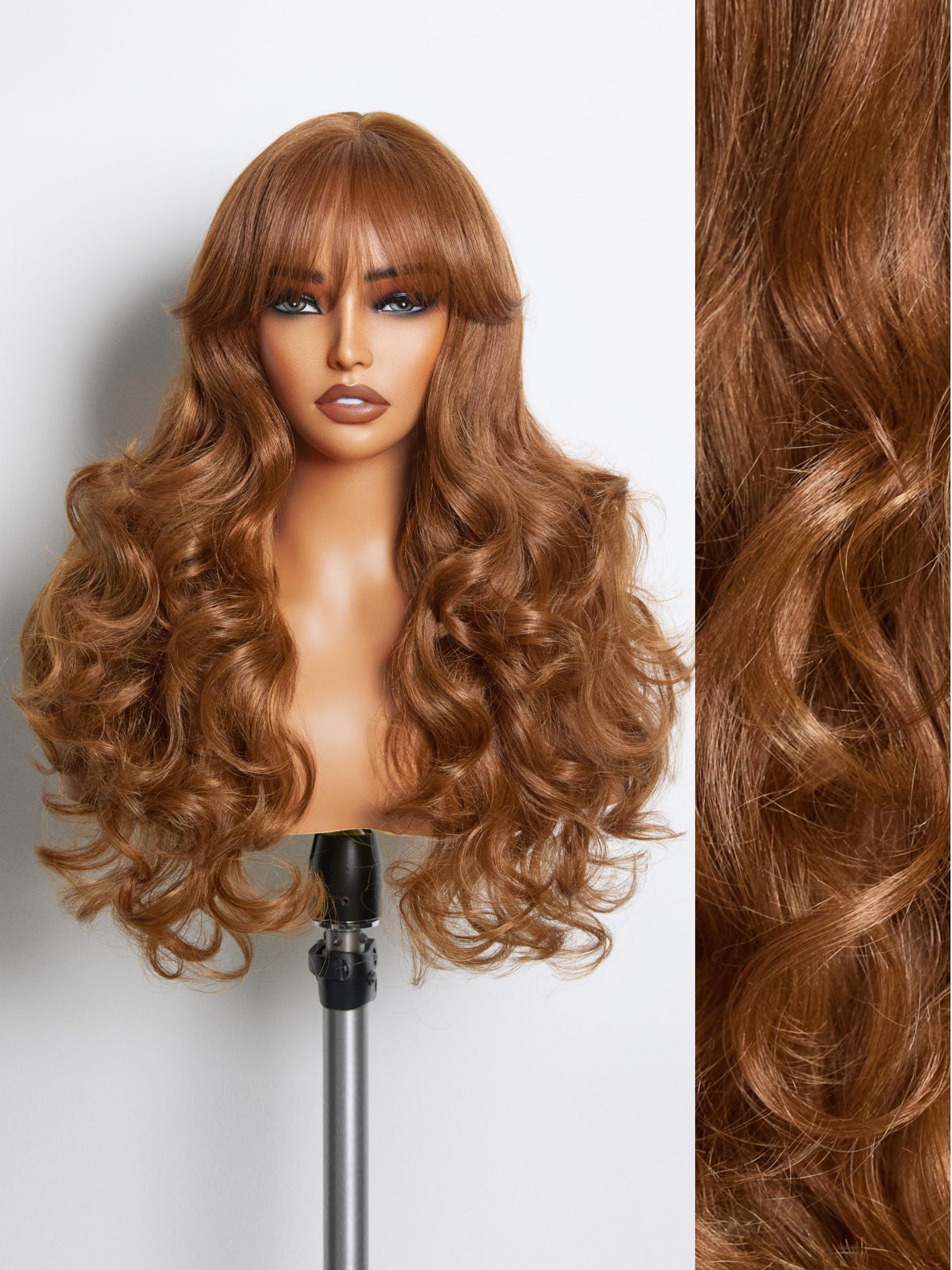 - SUN-BATHED HUES: Our honey brown wig with bangs hairstyle captures the essence of a sun-kissed palette, offering a warm and inviting shade that's both versatile and timeless. This rich, approachable color complements a variety of skin tones, adding a soft glow to your complexion. With its subtle depth, it's the perfect choice for those seeking a natural and radiant look that's easy to maintain and always in style