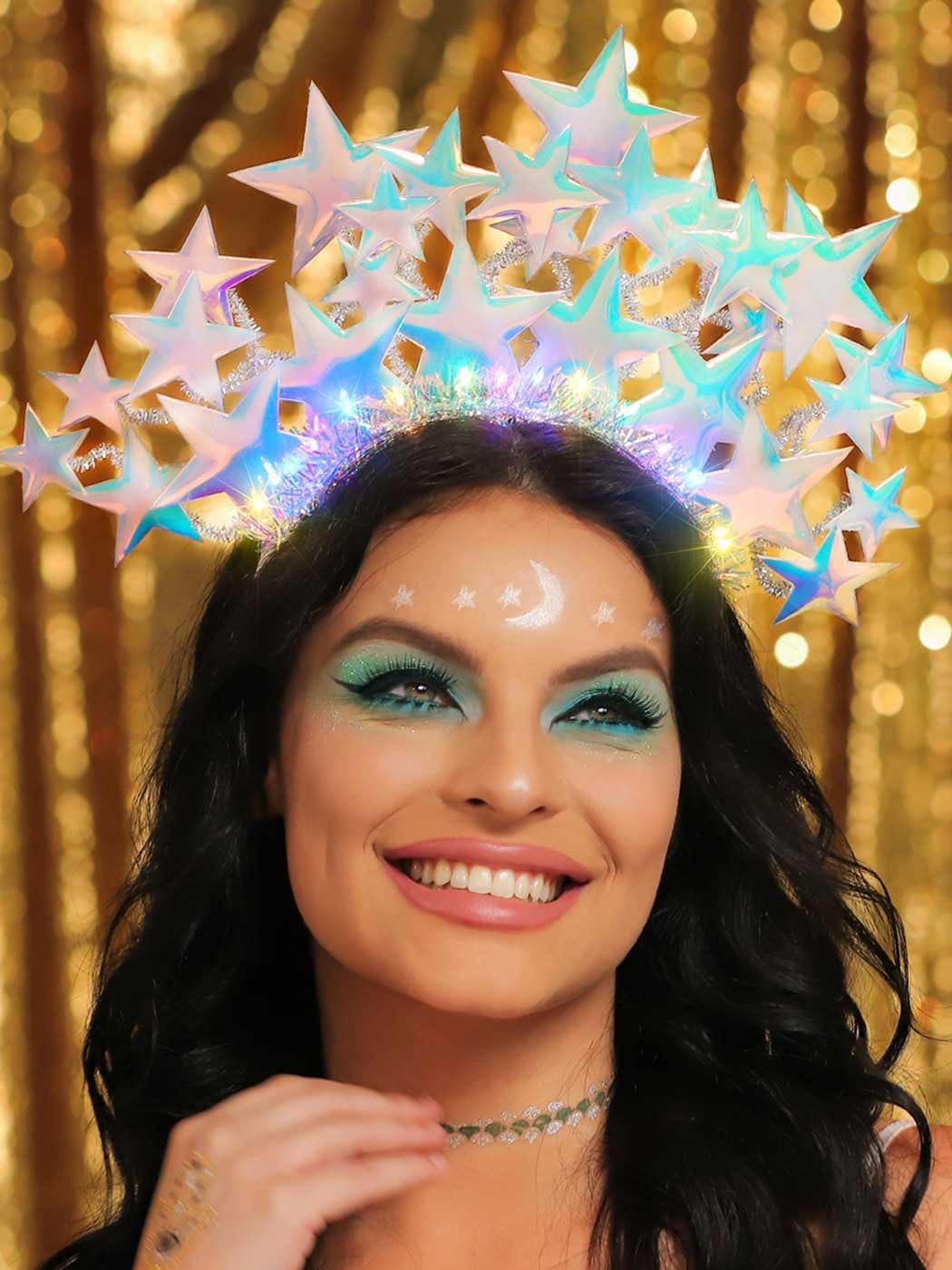 - Star headband made of holographic plastic stars ,when the light is turned on, the stars will reflect rainbow-like colors,shining and dazzling.