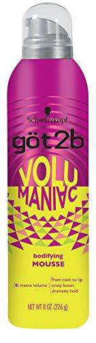 Got 2B Volumaniac Bodifying Hair Mousse For insane volume. From root to tip. Crazy boost, Dramatic hold. Need the extra boost of body and volume to take style to new heights. Insane volume hold from root to tip.