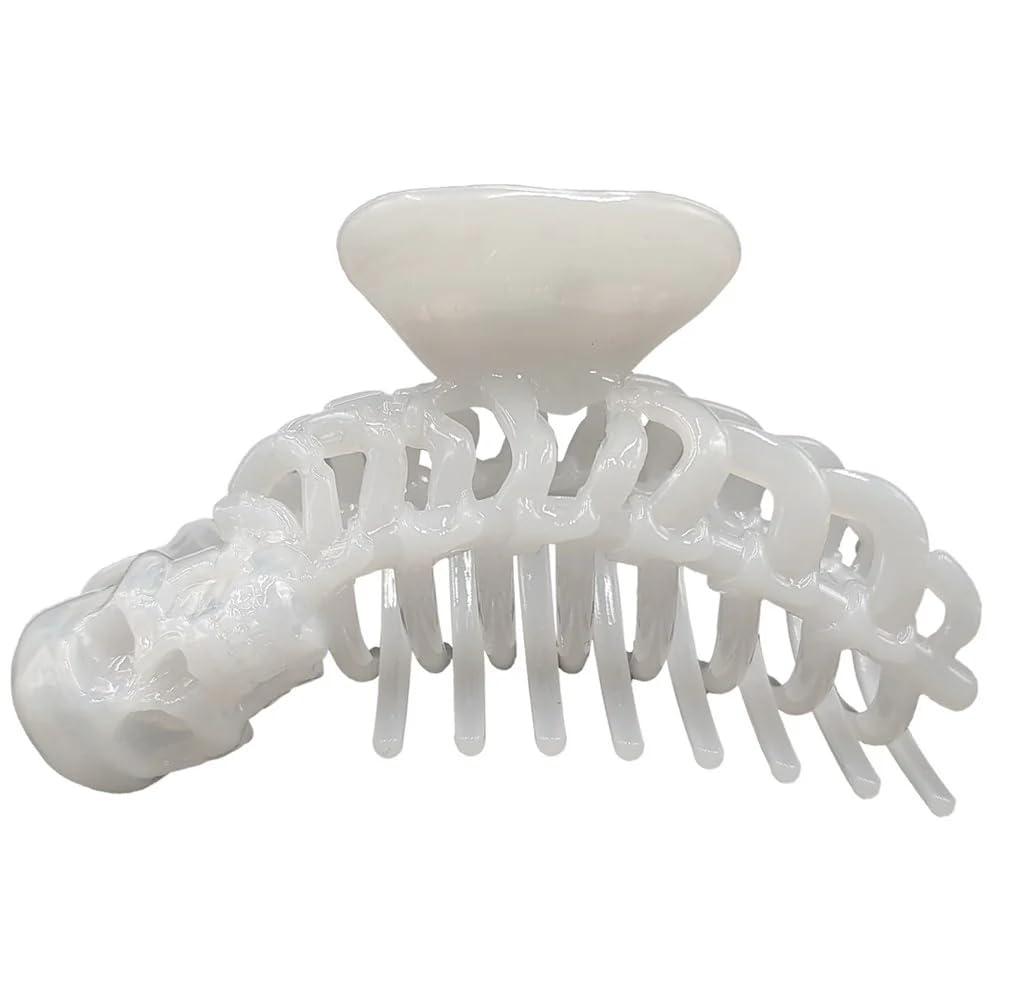 This horror hair clip will grip your up-do like the undead. Ghoulish skeleton and ribcage detail measures approximately 4.15" x 2.3". Holds a scary amount of hair!