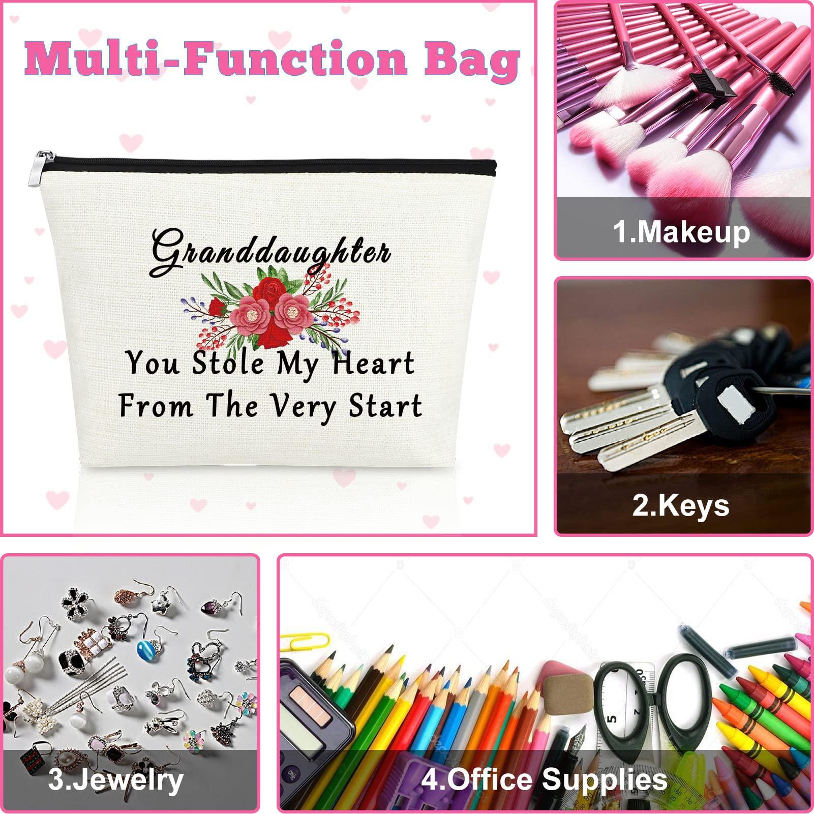 - Granddaughter Gift from Grandma and Grandpa:Bag with words:"Granddaughter, You Stole My Heart From The Very Start". We love the thought behind this present and the message make it a really lovely present.this makeup bag makes a ideal gift for your granddaughter, expressing your love and concern to her.