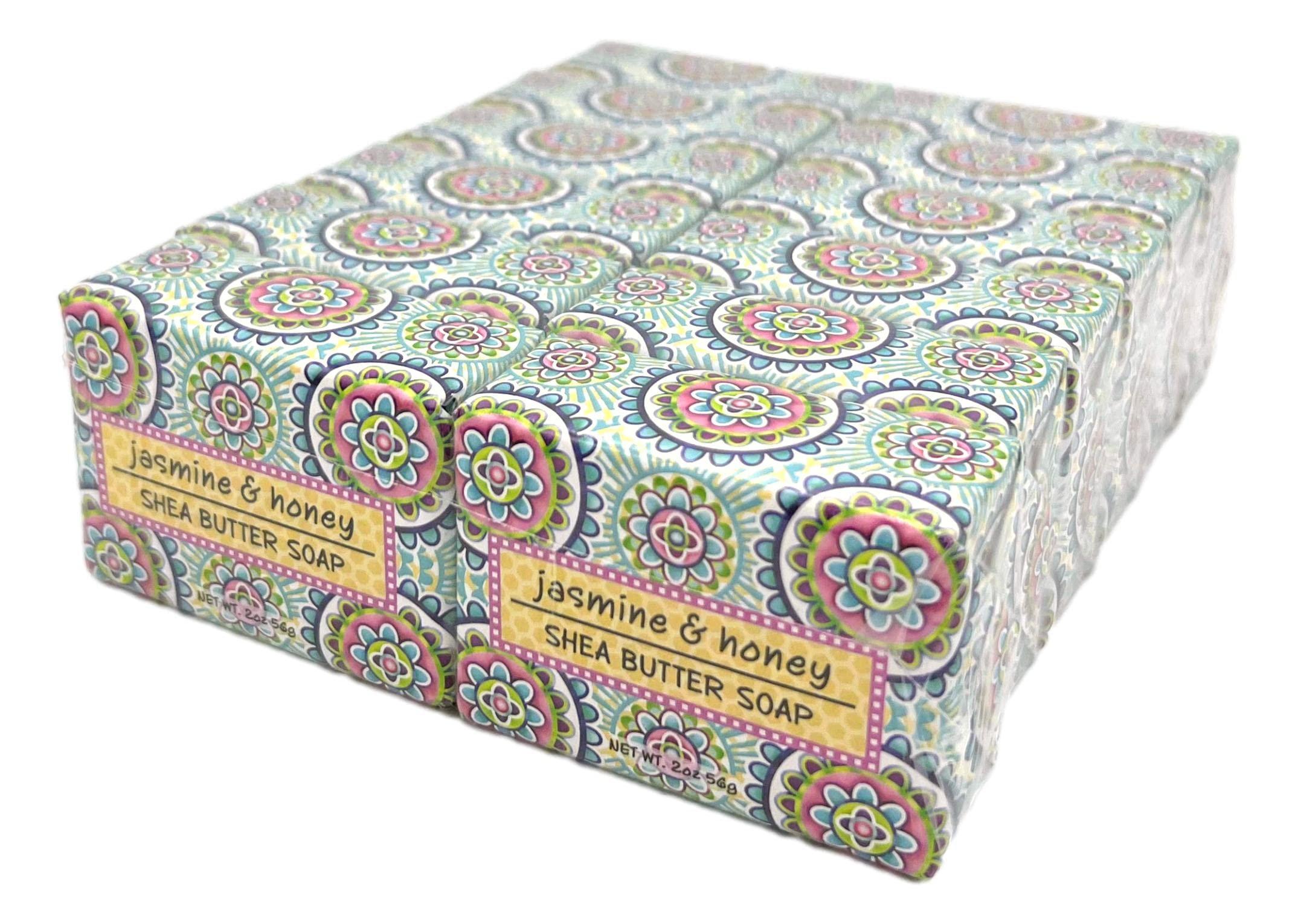 - Jasmine and Honey enriched with shea butter, cocoa butter, virgin olive oil, grapeseed oil, jasmine oil & golden honey and blended with exfoliating oat flour, almond flour & apricot seed