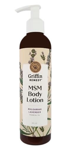 - FAST ABSORBING and DEEP HYDRATION Griffin Remedy Body Lotion with organic sulfur compound MSM is lightly scented with light, floral, relaxing Bulgarian Lavender pure and natural essential oil, lightweight, non-greasy and absorbs quickly into the skin, while soothing and healing to achieve a healthy vibrancy and lasting moisturization.
