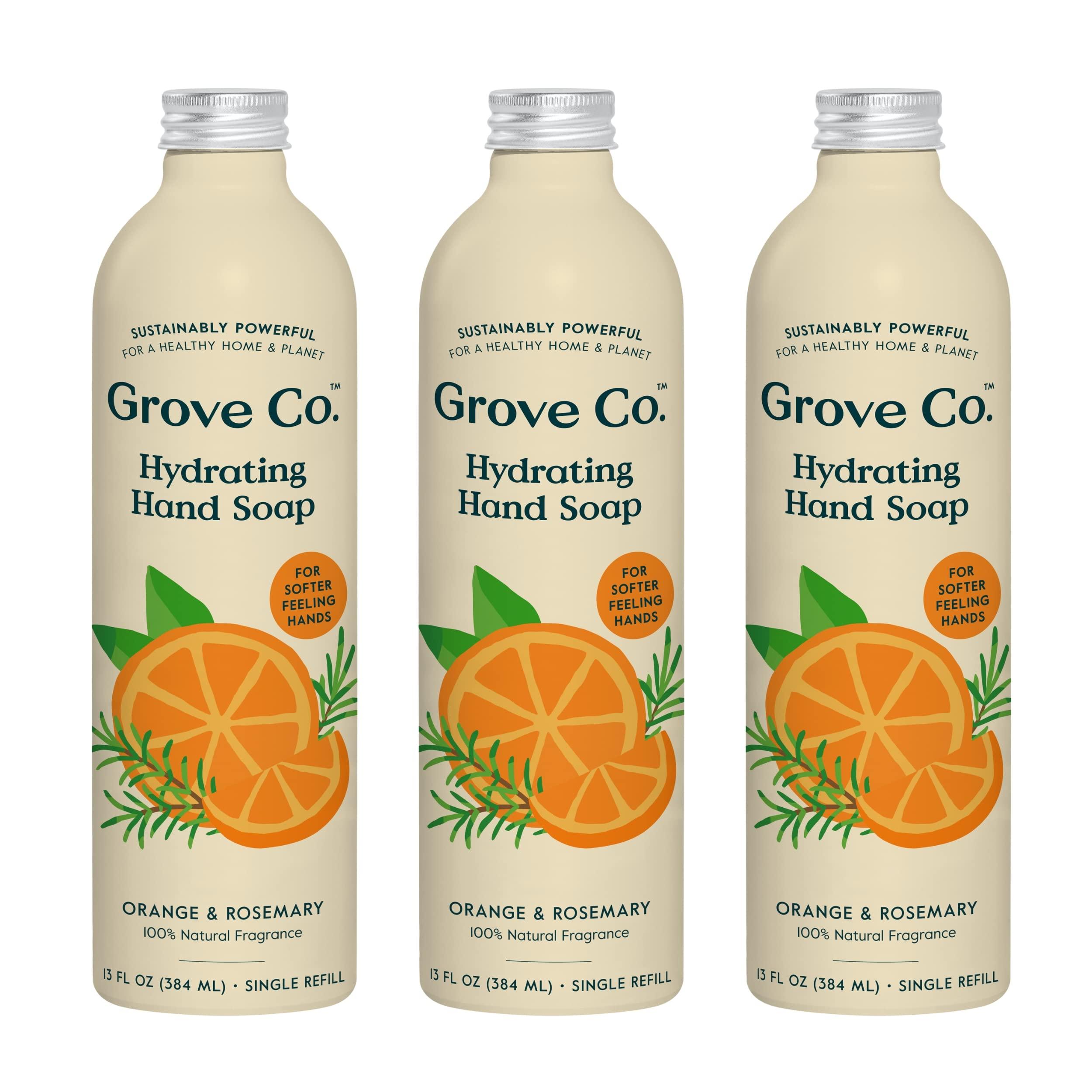 - GEL HAND WASH REFILL: A hydrating and concentrated Grove Co. Orange & Rosemary handsoaps refill crafted to be sustainably powerful for a healthy home and planet. Pair with our Reusable Hand Soap Dispenser. A durable and mindful housewarming gift