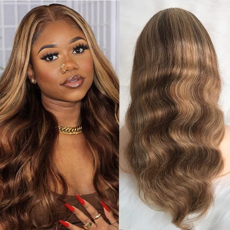 Guanyuwigs 13x4 Body Wave Highlight Lace Front Human Hair Wig Transparent Lace Wig 4/27 (14inch)