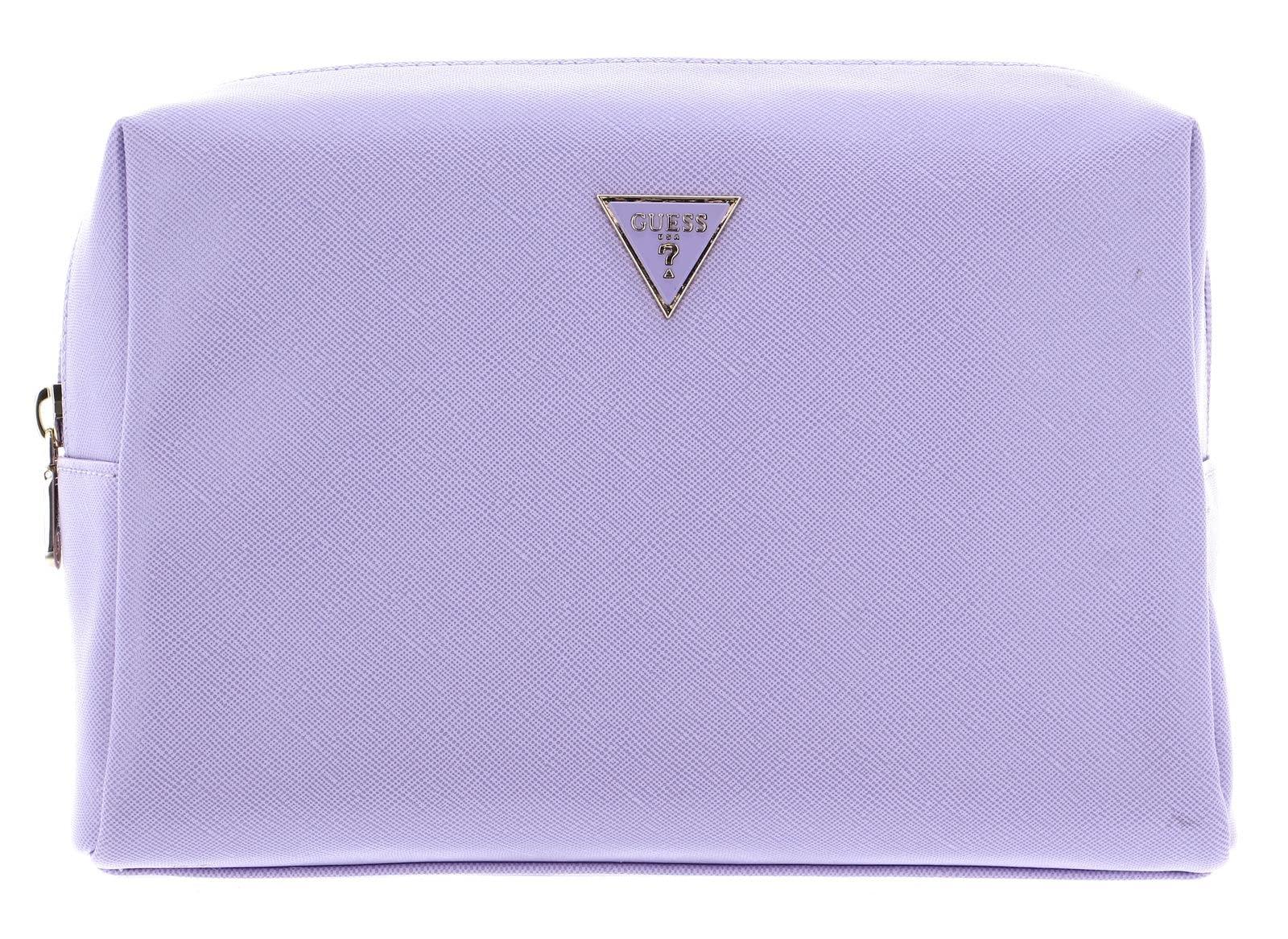 Toiletry bag details: Dimensions: width approx. 24 cm, height approx. 16 cm, depth approx. 8 cm. Weight: approx. 190 g. Colour: Lavender (Lilac). Material: 100% polyurethane. Scope of delivery: GUESS toiletry bag with label.