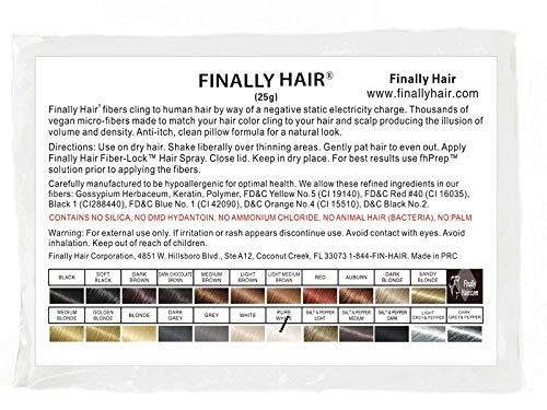 Finally Hair 25 gram refill bag hair thickening fibers fill in thinning hair instantly. Refill your existing hair fiber applicator bottle. You can purchase our bottle which is available as a choice under color selection if you don't have one. Finally Hair fibers are the highest grade fibers available today. These fibers are ammonium chloride free. Available in 23 colors. Since our hair fibers are free of potentially dangerous chemicals, please use our fiber lock hair spray to lock the fibers to your hair after you apply them.