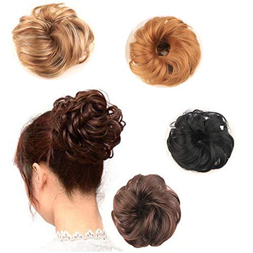 Bun Updo Hairpiece With Elastic Hair Tie, Secure And Comfortable To Wear, Perfect Bride Hair Extensions. This Synthetic Fiber Hair Bun Extension Creates An Elegant Chignon or Ponytail Accent That Can be Worn For a Prom, Wedding, or Evening Out. This Full Hair Bun Extension is Perfect Answers For Your Busiest Mornings. Use The Elastic Hair Band Tie Around Your Hair For A Secure Fit. Our Hair Wraps Will Transform Your Look In Seconds. It's That Easy! Just Like Your Own Hair, Synthetic Hair Will Accumulate Residue Through Normal Wear. The Fiber Should be Washed as Infrequently as Possible or When You Notice That The Fiber Appears Dull. Before Shampooing, Gently Remove Any Tangles or Teasing With Your Fingers or a Pick Comb. Pick The Hair From The Ends And Work Your Way up.B. Easy Washing Steps 1 Wash With Cold Water.Add a Dash of Shampoo And Wash Gently. 2 After Washing, Gently Remove Any Tangles With Your Fingers Or A Pick Comb. 3 Allow It In A Ventilated Place To Dry Naturally, We Do Not Recommend To Use Curling Irons, Blow Dryers, Or Hot Styling Instruments. 4 Use Your Fingers Or Comb To Tidy The Messy Updo After Washing, To Restore Its Original Naturalness. 5 If You Encounter A Serious Tangle, Rinse Thoroughly In Warm Water, Do Not Twist And Squeeze Your Hairpieces Too Hard.Then Pick The Hair From The Ends And Work Your Way Up. -TIPS:Due To Shooting Lights And Color Differences Of Different Monitors, There May be Some Color Difference Between The Picture And The Actual Product.