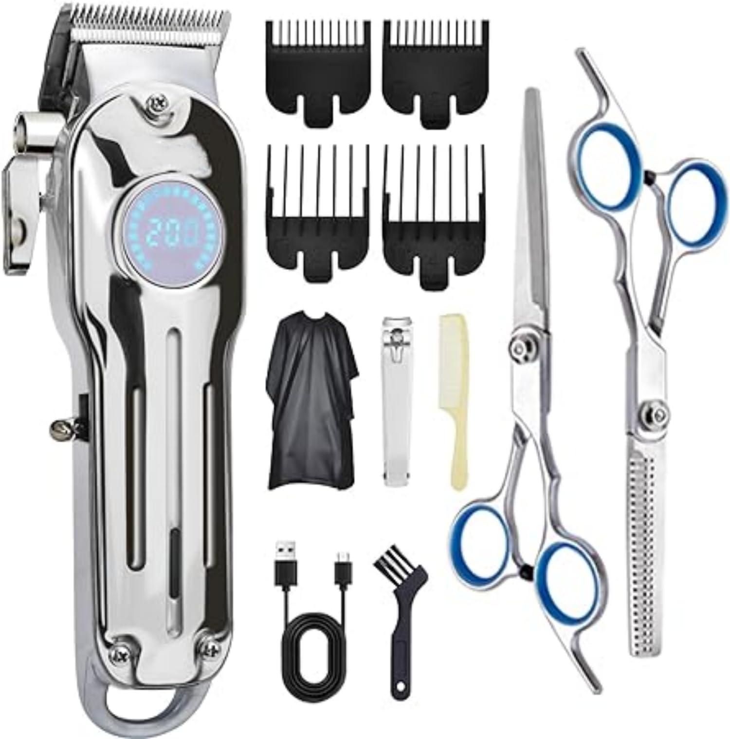 - 9 Pieces Men's Haircut Grooming Set This electric hair clippers for men is a complete set of haircuts and barber accessories, including apron, USB cable, cleaning brush, oil bottle and 4 limit combs (1/8''(3mm), 1/4''(6mm), 3/8''(9mm), 1/2''(12mm) ), suitable for for different hair lengths.