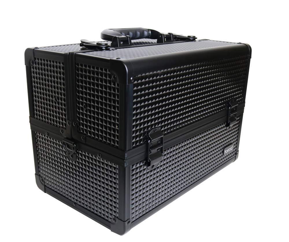 Aluminum Beauty Carrying Case for hair products or make-up in Rose Gold. Cool, fresh, modern. Sealed shut with locks on the top, perfect for hair and make-up artist professionals. Beautiful aluminum carrying care to store your beauty supplies! 14"W x 8.7"D x 9.8"H 4 Fold out storage trays (with little dividers) 4 divided compartments at the bottom Removable shoulder strap