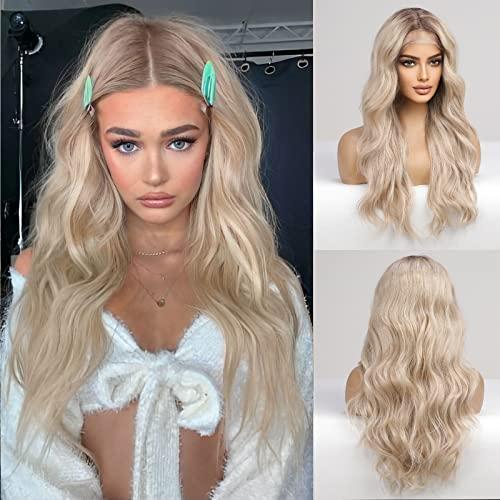 HAIRCUBE Grayish Blonde Wigs for Women,Long Curly Synthetic Hair Wig for Daily