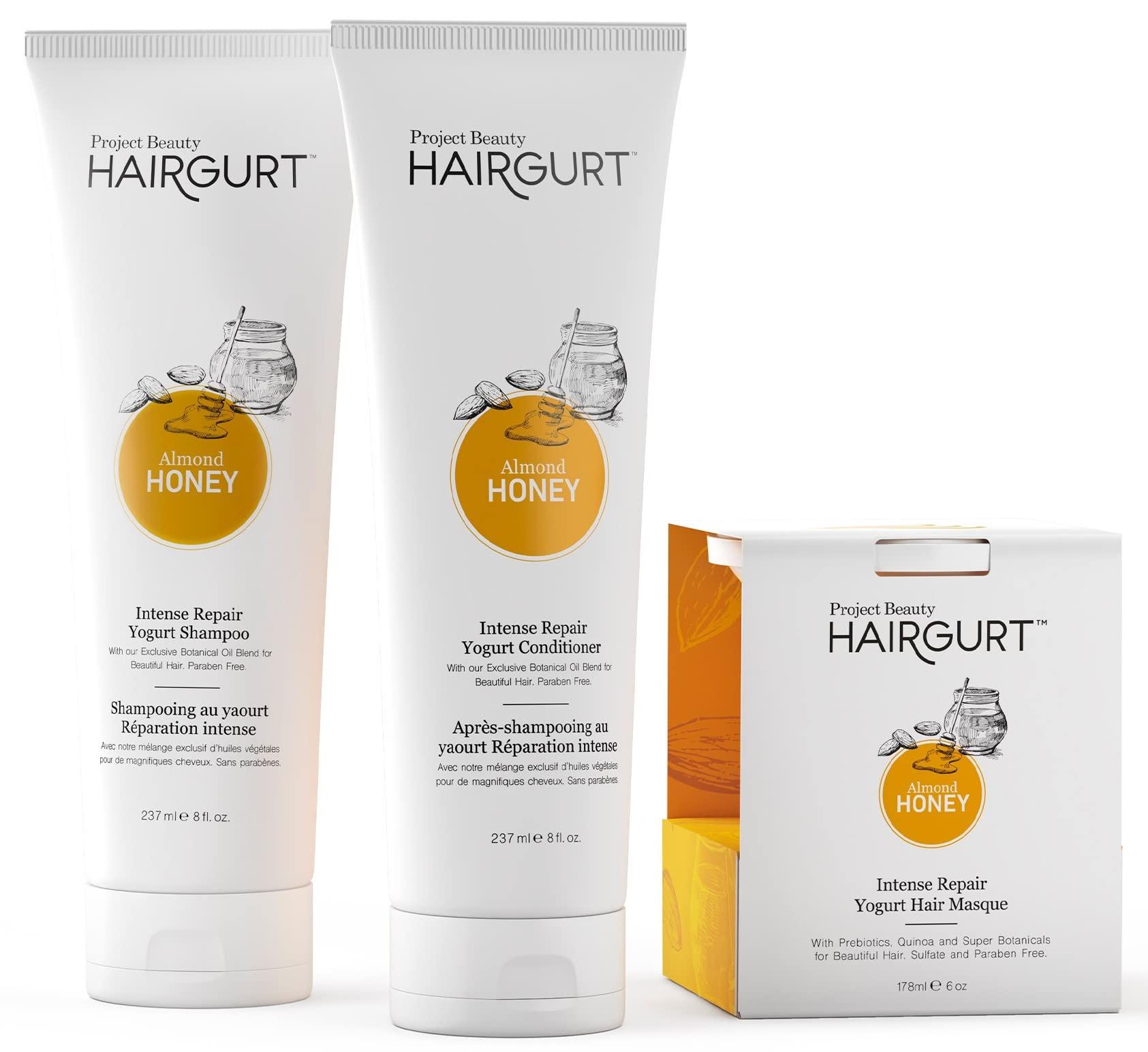 - One-Stop Haircare Solution: The Hairgurt intense repair yogurt hair care set is all you need to enjoy strong and shiny hair! Our premium pack includes with the Hairgurt honey shampoo, our amazing honey conditioner, and the matching honey hair mask for a 3-step routine that can truly transform your hair.