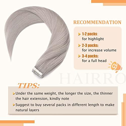 Hairro Hairro Tape In Hair Extensions Human Hair Tape Ins Glue In Skin Weft Rooted Tape On Hair Extensions Seamless Invisible Remy Hair Extensions For Women 14 inch 30g 20pcs #GREY