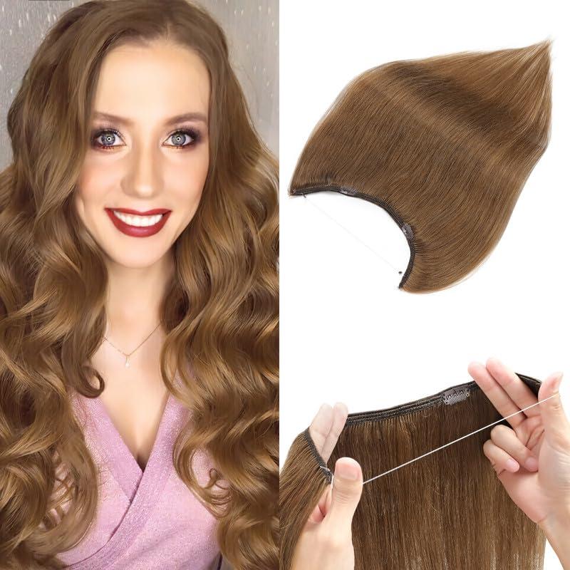 - Easy to apply and remove in 3 MinutesSimple to put on and take off in just 3 minutes. It's easy to install and remove without any help from a stylist, making it a convenient choice for busy women on-the-go.Add instant volume and length to your hair in Minutes with Halo Hair Extensions Real Human Hair.Our Halo Hair Extensions are designed to be lightweight and easy to wear, leaving your scalp comfortable and your hair looking voluminous and stunning. Say goodbye to bulky and heavy extensions!