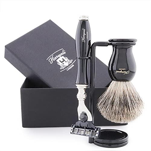 - Our mens manual shaving set comes with a 3 edge razor, shaving brush and shaving stand. Perfect shaving kit for mens who love wet shaving. Safety razor gives you the best clean and professional shave than straight razor.