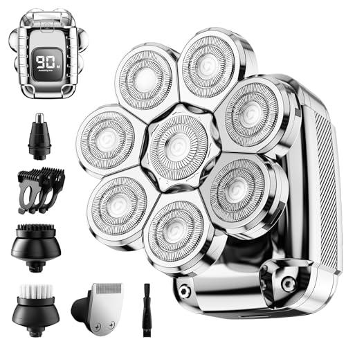 - 8-- - : Tailored for the bald man, this 8-in-1 head shaver kit includes a rotary shaver, hair clipper, nose/ear hair trimmer, facial cleansing brush, precision trimmer, three guide combs, and a face massager, making it the ultimate grooming solution.