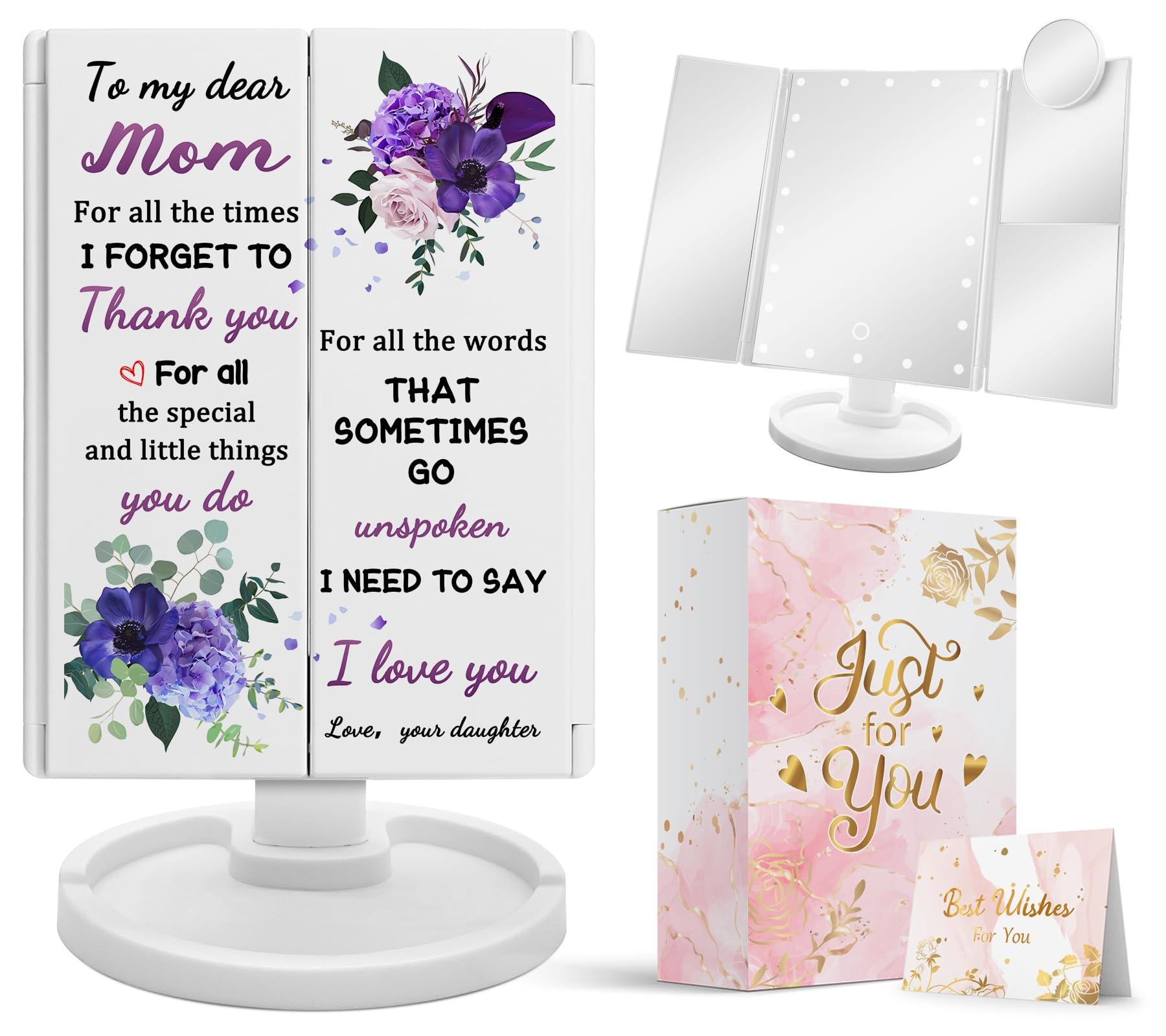 - BEAUTIFUL GIFTS FOR MOM: This lighted makeup mirror features 21 built-in LED lights, providing ample brightness without being harsh on the eyes. It's perfect for applying makeup in dimly lit or low-light spaces, ensuring that Mom always looks her best