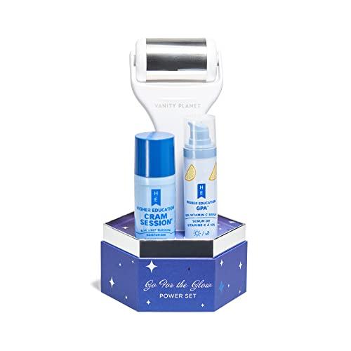 - HIGHER EDUCATION X VANITY: We partnered with our skincare besties at Vanity Planet to bring you the glowiest skincare set EVER! Included in this skincare set is Higher Education Skincare's blue light blocking moisturizer CRAM SESSION, Higher Education Skincare's vitamin C serum GPA, and Vanity Planet's Revive Facial Ice Roller