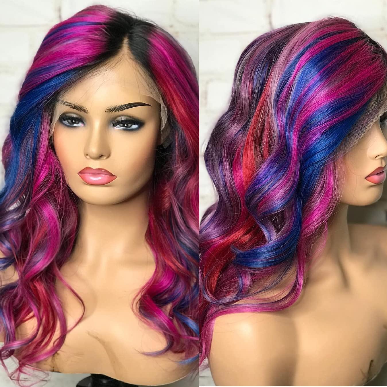 Highlight Blue Purple Body Wave lace front wigs human hair wig for black women 13x4 lace part wig Left Side part