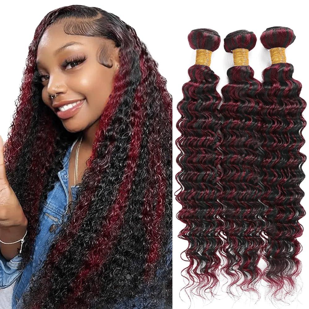 - P1B99J Deep Wave Bundles Hair Color: P1B99J Bundles,Highlight Burgundy Deep Wave Human Hair Bundles,Beautiful and Fashion