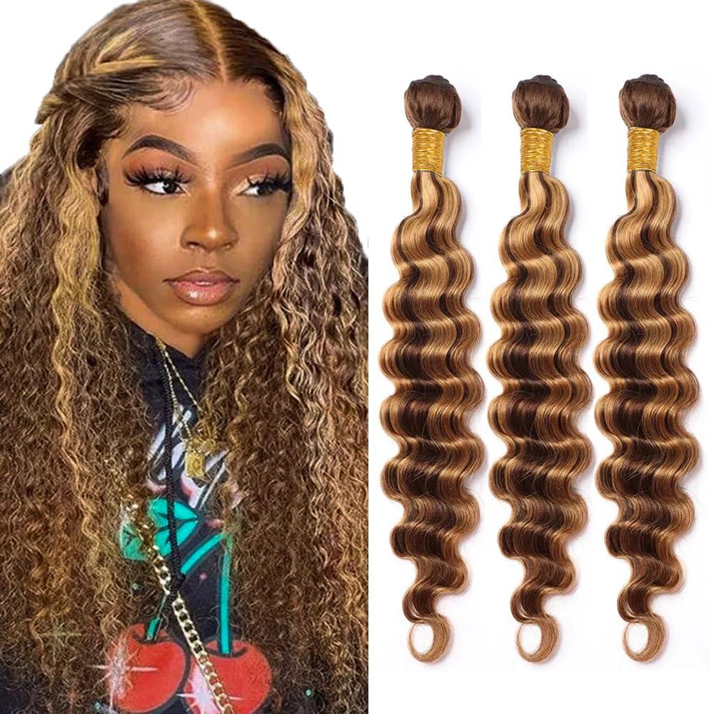 - Hair Color:Brazilian Human Hair Deep Wave 3 Bundles,Human Hair Color P4/27,Soft And Buncy,100(+/-5)G Each Bundle.