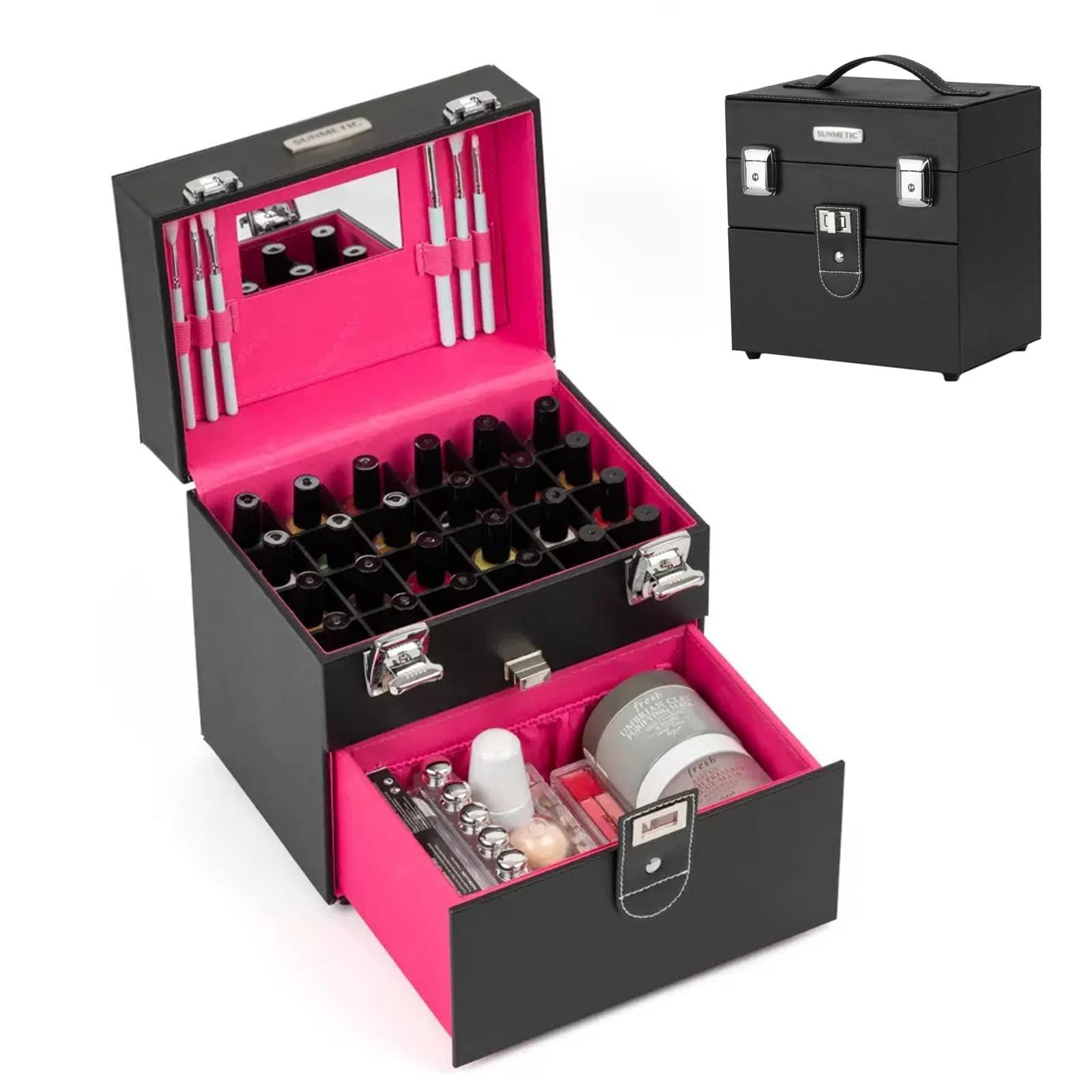 - Leather portable cosmetic case with drawer Nail case The tattoo is semi-permanent. The leather outer case has an elegant texture. The upper cover is equipped with a small mirror to improve the practicality of the case. The elastic band on the upper cover can fix the brush. The first layer of 15ML nail polish can hold 20 bottles