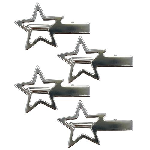 Hollow Star Hair Clips for Styling - 4Pcs Y2K Silver Star Hair Clips for Women Metal Star Hair Barrettes for Hair Non Slip Cute Hair Clips Kawaii Hair Accessories for Girls Women Gifts