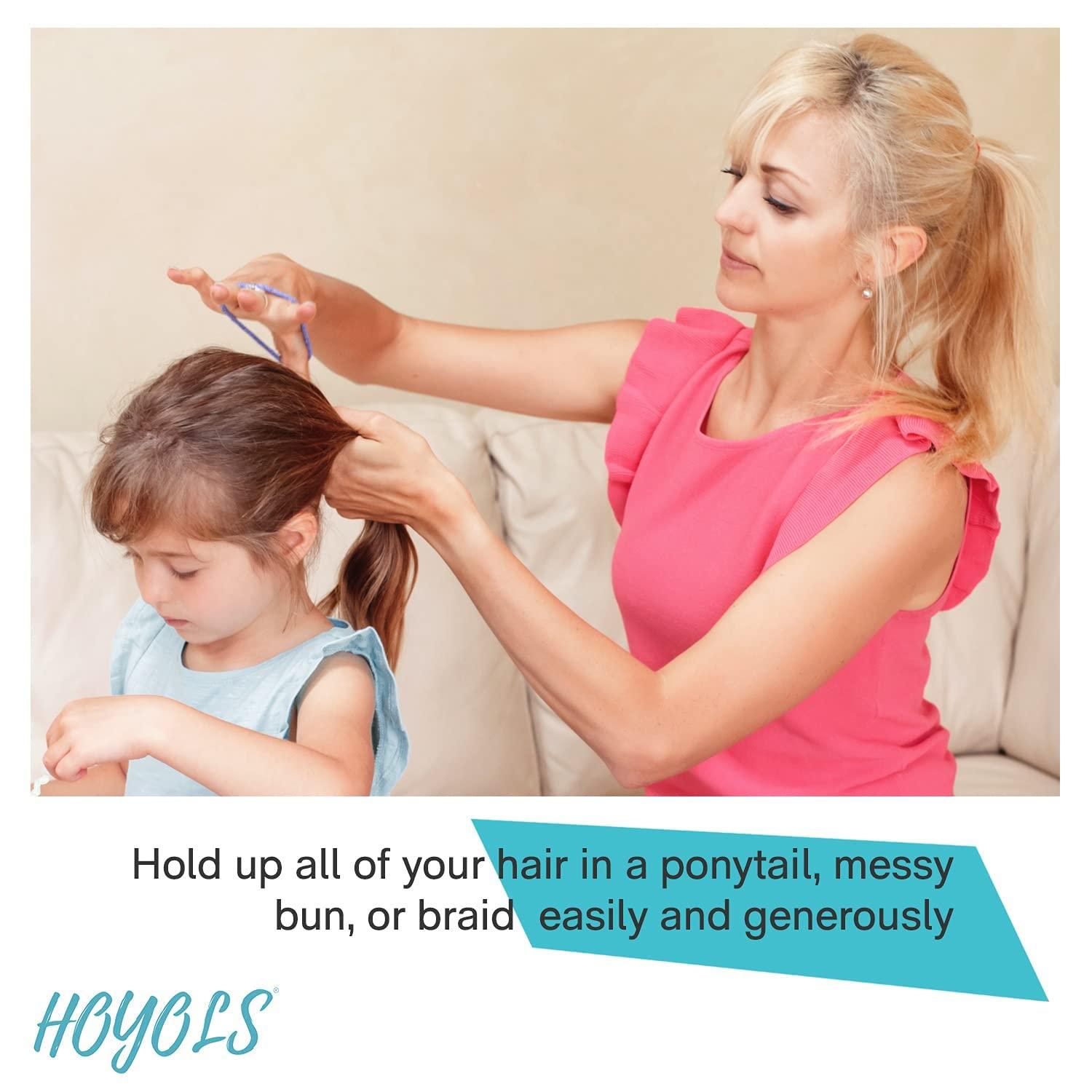 Hoyols elastic hair rubber bands are an everyday essential. Stretch easily and generously to hold up all of your hair in a ponytail, messy bun, or braid. Whether you have thick hair, thin hair, curly hair, straight hair, long hair, or short hair, these rubber bands can hold it up for all ethnic styles! Suitable for infant, toddler, baby girl, kid, woman, office use, student.