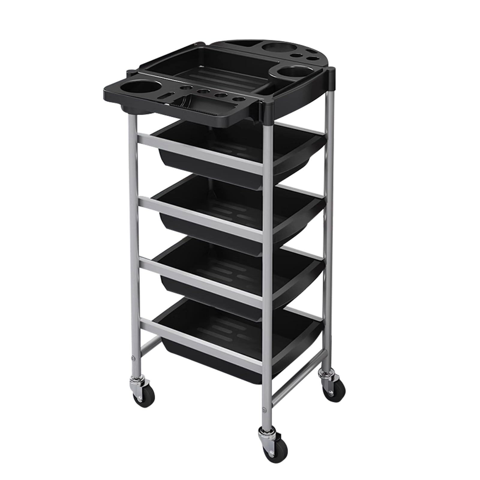 - Ample Storage CapacityMeet your storage needs with our salon cart. Boasting a large capacity, it features 1 spacious top tray and 4 layers of drawers. Organize your makeup, hairstyling tools, manicure essentials, and more, ensuring everything is within easy reach during your use sessions.