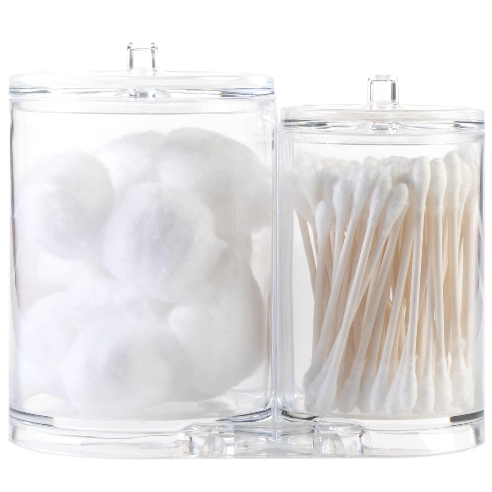 - Each acrylic lid has a wide mouth which makes it easy to access bathroom necessities such as Q-Tips, Cotton Balls, Cotton Pads, and Make Up Pads.