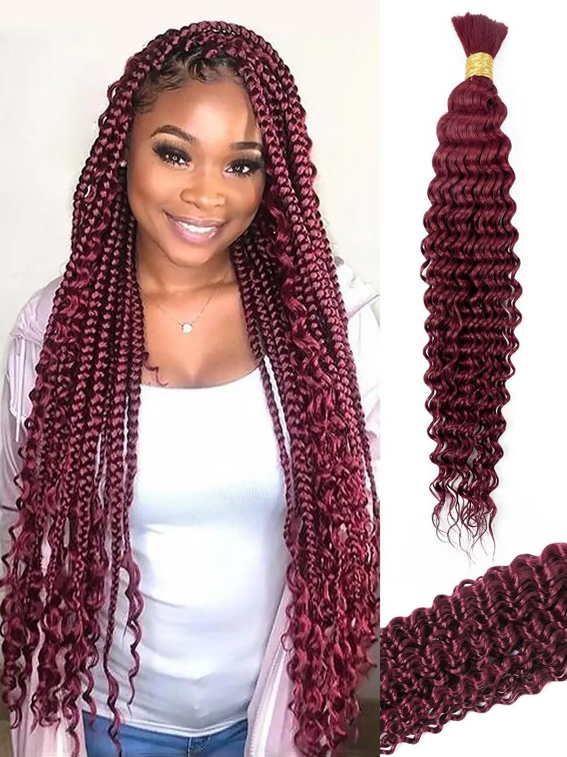 peekaboo Human Braiding Hair 1 Bundle 50g 20 Inch Deep Water Wave Bulk Human Hair for Braiding No Weft 10A Brazilian Virgin Curly Human Hair Extensions for Boho Braids Wet and Wavy Red Burgundy Braiding Hair